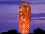 鱼尾狮公园在新加坡河河口的海宾大道上,有一座喷水的狮城标志,白色的狮头鱼身像,高达8公尺,乃新加坡的国徽。
