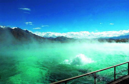 地壳运动造就了世界屋脊,同样也造就了最火爆的地热资源。羊八井位于拉萨西北方,西藏念青唐古拉山下的盆地内,占地面积约15平方公里。两侧是高耸入云的皑皑雪山、冰川,中间盆地则是一汪汪火热的温泉。不远万里来这里“享福”的,没有人失望而归。