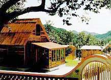山脚下的彩虹山庄,建有新颖超俗的欧式别墅式木屋,山庄内设有客房17间,特别建有一套风格别致的白宫套房。目前拥有床位80个,一个小型会议厅,乡村酒吧和以调制鲜活红鳟鱼为特色的“柿林居” 村庄。可供游人食宿、开会、娱乐、垂钓、矿泉沐浴等多种享用。