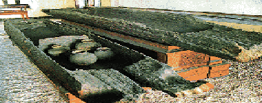 滴翠峡西岸一块高约200米的偏岩斜台上,搁放着一只黑色“木船”,此即“船棺”。同巴雾峡悬棺一样,这也是古代巴人的一种葬俗。船棺大约起因于大宁河古代渔民葬俗。