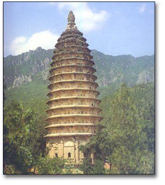 嵩岳寺塔,在登封县城西北6公里太室山南麓嵩岳寺内。嵩岳寺原名闲居寺,早先是北魏皇室的一座离宫,后改建为佛寺。此寺的建造年代在北魏永平元年至正光元年(508—520年)之间,最少也有1450多年的历史。