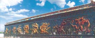 九龙壁是大同市内众多“龙壁”中规模最大的一座。位于大同市东部,原是明初代王朱桂(朱元璋之子)府前的照壁。