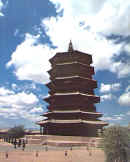 在我国现在保存的古塔当中,应县木塔无论在建筑规模或建筑艺术上,都有特殊的地位,可以称得上是我国以至世界古建筑中的一件珍品。 木塔坐落在县城的西北角,原来这里是一座规模 很大的佛宫寺,后来寺庙塌毁,只剩下这座原名叫释迦塔的木塔巍然屹 立。 古代匠师的天才创造 应县木塔外形是八角形,高达67.13米,底层直径30米,外表看是五 层六檐,但每层都设有一暗层,明五暗四,因此实际是9层。 这座建于辽代(1056年)的木塔,除了石头基础外,全部用木头建造, 各层用内外两圈木柱支撑梁架,而木柱之间,使用了60多种斜撑梁、木 枋和短柱,规格和手法变化多样,组成不同方向的复梁式木架,使整个 塔的构架联结成一个整体,既坚固,又美观。解放前,我国著名建筑学 家梁思成专程到应县对此塔进行过认真的考察。解放后,建筑学家陈明 达著有《应县木塔》一书。 共用木材3500立方米 据说,当时辽代统治者为了建这座塔和佛宫寺,在河北、山西一带 动用数万民工参加劳役,共用去了大约3500立方米的木头;松木和榆木, 松木不易变形,榆木坚硬,两种木头的结合,使得这座塔900多年来,经 受风雨侵蚀以及多次地震、战争的破坏,依然巍然耸立。塔建成200多年 至元顺帝时,曾经历大地震7日,但木塔无恙;1926年阎奉军阀战争,这 座塔曾中200多发炮弹,除打断了两根柱子,别无损伤。 建塔缘由 为什么辽代的统治者要建这么一个庞然大物呢?辽代信奉佛教,建 立这样一座高耸云天的大塔,是企图对人民的精神起震慑作用。但也有 人说,辽代兴宗皇帝是为了让他心爱的妃子观赏恒岳美景而建的。这座 木塔的第二层到第五层,四周都设有平座栏杆,供游人凭栏远眺,特别 是登上最高一屋,不但整个应城历历在目,而且远处的恒山也隐约可见。 塔上有一副楹联:“俯瞩桑乾滚滚波涛萦似带,遥临恒岳苍苍岫嶂屹如 屏。”这座塔确实是观景的好所在。在战时,这座塔也可以作为观战和 指挥作战的僚望台,在最高一层向远处僚望,视线可达60里外。 体积之大举世罕见 据说,在解放初期,县里曾在这座塔内召开“万人大会”,每层都 坐满了人,安装了喇叭。体积之大,由此可见。 从1974年开始,政府对它进行过一次比较大的维修,费时8年,用去 300多立方木材,花了38万元。在整个过程中,在塔内佛像的肚子里发现 了一批辽代经刻、木版套色绢质佛像画等珍贵文物。 塔内明层都有塑像,是辽代雕塑的佳品,佛像的神态庄严,慈祥。
