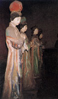 晋祠内圣母殿的宋塑侍女(泥塑)、老枝纵横的周柏(齐年柏)、长流不息的难老泉,并称“晋祠三绝”。侍女泥塑最为珍贵,这组宋代塑像,是我国古代雕塑艺术中的珍品,共有42尊之多,为圣母殿最著名的艺术品。这些“侍者”,有的捧饮食,有的侍起居,有的奏乐歌舞,有的捧文印翰墨等。塑像身材适度,服饰美观大方,衣纹明快流畅,姿态自然。而从她们的面部表情,则可以看出,由于长期禁锢在宫廷之中,这些侍女们的青春为哀怨、厌抑之情所笼罩。
