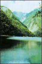 在文县境内,距县城北部约100公里,海拔2400米,面积约20平方公里,水深480米。天池在天魏山之中,有9道大湾108曲,汇成一泓形似葫芦的碧池。山光水色,浑然一体,如诗似画,潆红漾绿,烟波茫茫,水天一色。如乘坐木筏,溯湖而上,擦着伸入湖中的象嘴石,濒临饮马池,绕到捉鱼沟时,只见两侧悬崖壁立,遮天蔽日,一声号子,山鸣谷应,满谷震荡,使人有置身仙境之感,妙趣横生,心旷神怡。天池周围山峦峻秀,松柏争荣,滴绿溢翠,琵琶花、杜鹃花、丁香花遍布山野,千姿百态,峰峦奇形怪状,有的如雄狮昂首,有的似骏马腾空,有的象仙女下凡,怪石嶙峋,奇景入目,美不胜收。天池鲤鱼繁多,每到晚上,人们到捉鱼沟用火把一照,鱼群见火光即浮聚水面,小伙子手执木刀,手起刀落,一挥一条,如窝中取卵,兴趣盎然,欢声笑语,满载而归。宽阔的水面,还是良好的天然养鸭场,岸边的野卉松花,又是蜜蜂的美味佳肴,好客的天池人,常用蜜糖来待客。天池风景优美,环境优雅,空气清新,无污染,是理想的避暑游览胜地。