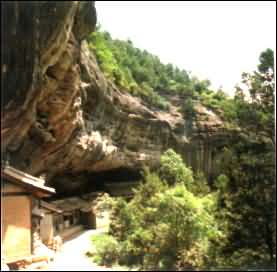 仙人崖石窟位于天水市东南65公里处的麦积山风景名胜区,麦积山石窟的东北方向,因有仙人点灯指路的传说,被认为是仙人集聚之地而得名。现为佛、道合一的石窟寺庙。仙人崖由三崖、六寺、五莲山组成,有明清殿宇27座,房屋54间,及北魏、宋、明、清各代塑像197尊,壁画83平方米,永乐年间的珍贵铜佛像5尊。仙人崖三崖中,以西崖面积和佛殿数量为最,14座殿宇内有唐、宋、明、清各代佛像100多尊,艺术价值极高。仙人崖地势险要,以石岩洞、献珠峰、南天门、宝盖山千佛崖最为典型,奇山、秀水、绿树、野花相映,涉足其间,确有身临仙境之感。