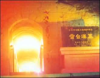 雷台汉墓位于武威市北关中路雷台公园内,是1969年由当地农民在雷台老槐树下发现的一处东汉晚期的大型砖石墓葬,因出土了文物珍宝、中国旅游标志铜奔马而著名。雷台是古代祭祀雷神的地方,因在一高约十米的土台上建有明朝中期建造的雷祖观而得名。据出土马俑胸前铭文记载,雷台汉墓系“守张掖长张君”之墓,约在公元186-219年之间。墓道长19.34米,墓室分前、中、后三室及配以左右耳室三处,出土有金、银、铜、铁、玉、骨、石、陶器等文物231件,铜车马仪仗俑99匹。 其中以铜奔马艺术价值最高。铜奔马又称“马超龙雀”,呈发绿古铜色,马高34.5厘米,长45厘米,重7.15公斤,马呈飞奔状,三足腾空,昂首扬尾,右后足下踏一展翅奋飞回首惊视的“风神鸟”龙雀,改变了传统天马的造型手法,又符合力学平衡原理,蕴含丰富的天马文化内涵,铸造技巧精湛,堪称青铜艺术之极品,铜奔马原件现珍存于甘肃省博物馆,全省各地均可买到原样复制品作为纪念。
