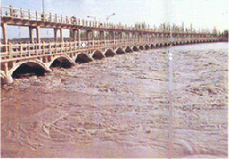 被称为“无疆野马”的塔里木河 ,全长2179公里,是我国最长的内陆河。塔里木河由发源于天山的阿克苏河、发源于喀喇昆仑山的叶尔羌河、和田河汇流而成。流域面积19.8万平方公里,最后流入台特马湖。塔里木河河水流量因季节差异而变化很大。每当进入酷热的夏季,积雪、冰川溶化,河水流量急剧增长,就象一匹“ 无疆的野马”奔腾咆哮着穿行在万古荒漠和草原上。在塔河上架有一座80孔 ,混凝土结构,全长1600余米的大桥。在塔河流域兴建了许多水利设施。各族人民的辛勤耕耘,昔日荒漠变成桑田,塔河两岸瓜果满园,稻花飘香。