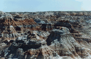 早在亿万年前的“侏罗纪”,这里沉积着很厚的煤层,历经风蚀雨剥,煤层表面的沙、石被冲蚀殆尽。又经曝晒或雷击起火,煤层燃尽后,烧结岩堆积,加之各地质时期矿物质含量不同,这一带连绵的山丘便呈现以赭红为主,夹杂着黄白黑绿等多种色彩。再经风吹、日晒、雨剥,又呈“雅丹地貌”。远望近观,状如城郭、古堡,因而得名。