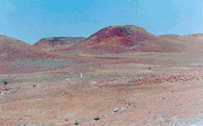 火烧山与五彩城的不同点在于,这里连绵起伏的山丘不是五彩斑斓,而全是由烧结岩构成的一片赭红色。放眼环顾,几乎见不到其它色彩。每逢晨昏,在朝阳或晚霞映照下,仿佛仍在熊熊燃烧,壮丽罕见,因而得名。