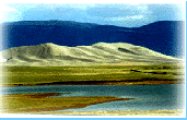 哈密“鸣沙山”横卧于东部天山的南山与北山间的草原上。相对高度35至 115米,南北长约5公里,塔水河和柳条河绕沙山两侧蜿蜒流过。立于天山庙上,可鸟蓝瞰其全貌。由于这里特殊的地理环境和温度条件的作用,当游人静卧沙上时,风动沙移,沙鸣声如泣如诉,如萧如笛,凄蜿低回。当游人做滑沙运动时,沙粒向下翻卷滚动,相互磨擦,声波振荡,沙鸣声如同飞机从空中掠过,隆隆作响。
