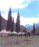 南山西白杨沟是乌鲁木齐南郊著名的避暑游览胜地,距市区75公里。属北天山的喀拉乌成山北麓,地处中山与低山过渡带,海拔2252公尺,年降雨量500-600毫米。一进沟谷,只见蓝天下群山峻峭,牛羊成群,密林绿野,溪流淙淙。云杉掩映下,毡房点点,小楼座座,风光如画。