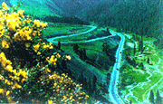 果子沟风景秀丽,景观奇异,历来被视为新疆的名胜之地,素有伊犁“第一 景”之美称。它纵贯北天山,是312国道乌鲁木齐——伊犁公路的必经通道,也是 伊犁的天然门户。果子沟全长28公里,沿着乌─伊公路的大致走向,就是新疆古丝 绸之路的北道。松树头,是果子沟的绝顶之处,北下直达赛里木湖畔,南下直入果 子沟峡谷。赛里木湖,亦称三台海子,与果子沟唇齿相依,亦为新疆名胜之一。由 松树头南下二台林场,山 路盘旋崎岖,一落幽谷, 是果子沟的险峻之处。落 谷傍山,有一高山瀑布凌 空奔泻而下,状如白练悬 空,壮观异常。二台,是 由清代军台、驿站得名。此处草原木屋交相辉映, 是游客的最佳休息处。从 二台南下,山势渐低,谷 口渐开,公路两只见云杉 疏透,奇杨怪柳交柯,山杏、野果,满眼新绿。果子沟是大自然赋予的天然宝库,以野果分布广阔而闻名, 药材资源也很丰富,自春至秋香草馥郁,野花烂漫,艳丽多姿。果子沟给游人带 来想象,也带来美的享受,她将为更多的想往伊犁的海内外游客带来美的升华。