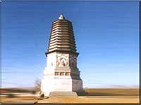 在内蒙古宁城县辽中京城遗址内。塔筑于高约6米的夯土台基上,八角十三层砖砌密檐式,高74米。塔座为须弥座,上部砌出仰莲瓣,经改筑,成为每边宽14米、高17米的直壁。塔身第一层每面嵌镶浮雕造像,正中镶成起券佛龛,龛内莲座上趺坐佛像,姿势各不相同,佛像两侧为菩萨、力土像,塑像之上砌出华盖,两侧上方各有飞天一对。浮雕刀法简练,线条流畅,形象庄严,是辽代雕塑艺术中的佳作。每面的转角柱都砌成塔形,上刻塔铭及佛名。此塔始建于辽代中期,传为感圣寺内的佛舍利塔,今塔前尚有旧寺遗迹可寻。经历代修缮,塔刹及塔座已失原貌,塔上第一层南面尚有清咸丰四年(1854年)重修时的蒙古文题记,是现存辽塔中最大的一座。