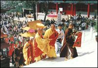 般若寺坐落在市中心人民广场东侧,占地面积7200多平方米。它创建于1923年,1931年迁移到南址重建,1934年改名为“护国般若寺”,是长春市规模最大的寺庙,该寺保存较为完好,一九俄文五年国务院批准为全国重点保护寺庙。寺院有左、中右三门,门楼檐角飞,错落有致建工精七,宏伟美观,门侧红墙上面写有南无阿弥陀佛六个大字,进门左右有鼓楼和钏楼,正面为天王殿,殿前立有汉白玉石碑一座。殿内正中供奉弥载佛坐像,两侧有四大天王脚踏八怪的塑像,栩栩如生。殿后有塑有护法韦驮菩萨立像。大雄宝殿建在天王殿后面,是整个庙宇的中心,宝典外观庄严雄伟,半拱交错,檐牙高啄,画栋雕梁,彩画精丽,金碧辉粕。殿内正中供奉释迦牟尼佛祖。两侧面十八罗汉。殿后供奉观音菩萨佛像,再后便是基经楼,收基大量佛教经典。殿前苍松翠柏,古树参天,与宝殿红绿相映,显得格外雄伟壮观。寺院还有东西厢房数十间,分别为禅堂、斋堂起居室等。每适农历四月初八、十八、二十八来这里游览的人们常数万,摩户接踵,热闹非凡。