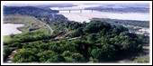 珲春城以南约70公里是敬信乡防川村,它位于张鼓峰下。再往前数公里便是1886年由清政府钦差大臣吴大澄同沙俄代表巴拉若夫监立的“土”字界碑。从这里到图们江口只有15公里。可以远眺日本海。登上附近山包上的了望塔,远处那雾气蒙蒙的日本海连着天际;近处中期饿三国的景致尽收眼底,左侧是俄罗斯的边城,右侧是朝鲜的豆满江市,这里是:“眼看三疆山川风貌。耳听三过鸡鸣狗吠”。
