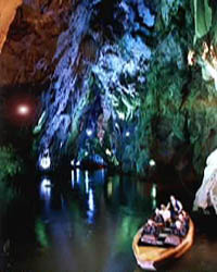 黄果树以南27公里,是以山奇水奇洞奇见长的龙宫景区。龙宫,人称“地下漓江”,一条长达 5千米的暗河穿过三十余座山头,接连九十余个溶洞。千奇百怪,千姿百态的钟乳石令人目不暇接,清澈碧绿,幽深宁静的暗河沁人肺腑,泛舟其中,倍感神奇舒畅。洞内瀑布更令人叫绝,天池水沿龙门倾泻而下,形成落差34米,秒流量 50立方米的“龙门飞瀑”,飞流汹涌,声震山谷,如此壮观的洞内瀑布国内绝无仅有。此外,龙宫天然辐射率为全国最低点,游客在饱览奇山异水的同时,还可以尽情享受低辐射对人体健康之益。