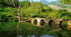 小七孔鸳鸯湖景区为世界同一纬度地区绝无仅有的岩溶地貌水上森林区,有珍奇树木 10多种。仅2公里的河段,就有70多级大大小小的跌水和瀑布。河的南侧群山起伏的原始森林中 ,生长着一种龟背竹,龟背山由此得名。与龟背山相连的野猪林,人迹罕至,林木遮荫蔽日,实为清凉世界。林中藤缠树树,树缠藤,是迄今发现的全国最大的野藤景观,其间石包木 、木包石,令人叹为观止。附近有两潭,人称鸳鸯湖,两湖相连,湖水面积约 13 公倾,水深40余米,荡舟湖上,别有情趣。距小七孔鸳鸯湖景区约 5公里的大七孔地峨宫景区,山高谷深,水流湍急,有一座高80余米的天生桥巍然而立。