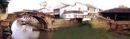 由世德桥和永安桥纵横相接,石阶相连,组成双桥,位于镇东北部,建于明万历年间(1573-1619年)。银子浜和南北市河在此交汇成十字。桥面一横一竖,桥洞一方一圆,样子很像古 代的钥匙,所以人们又称之为钥匙桥。1984年,旅美上海画家陈逸飞,以双桥为题材,创作了一幅题为《故乡的回忆》的油画,连同其他37幅油画在美国西方石油公司董事长阿曼德·哈默的画廊展出,后又被哈默购下,作为礼物送给邓小平,以双桥象征中美两国人民的友谊、合作与和平。1985年,这幅油画又被印上当年联合国首日封。由此,世界上越来越多的人领略了周庄古镇秀美的风光与古朴的风韵。