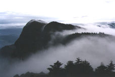 绚丽的自然风光 峨嵋山高出五岳、秀甲天下,山势雄伟,景色秀丽,气象万千。素有“一山有四季,十里不同天”之妙喻。清代诗人谭钟岳将峨嵋山佳景概为十景:“金顶祥光”、“象池月夜”、“九老仙府”、“洪椿晓雨”、“白水秋风”、“双桥清音”、“大坪霁雪”、“灵岩叠翠”、“罗峰晴云”、“圣积晚种”。现在人们又不断发现和创造了许多新景观,如红珠拥翠、虎溪听泉、龙江栈道、龙门飞瀑、雷洞烟云、接引飞虹、卧云浮舟、冷杉幽林等,无不引人入胜。进入山中,重峦叠嶂,古木参天。峰回路转,云断桥连。涧深谷幽,天光一线。万壑飞流,水声潺潺。仙雀鸣唱,彩蝶翩翩;灵猴嬉戏,琴蛙奏弹,奇花铺径,别有洞天。春季万物萌动,郁郁葱葱;夏季百花争艳,姹紫嫣红;秋季红叶满山,五彩缤纷;冬季银装素裹,白雪皑皑。登临金顶极目远望,视野宽阔无比,景色十分壮丽。观日出、云海、佛光、晚霞,令你心旷神怡;西眺皑皑雪峰、贡嘎山、瓦屋山,山连天际;南望万佛顶,云涛滚滚,气势恢弘;北瞰百里平川,如铺锦绣,大渡河、青衣江尽收眼底。置身峨嵋之巅,真有“一览众山小”之感慨。