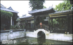 这座古庭园,布局精巧。它以“藏而不露”和“缩龙成寸”的手法,将亭、台、褛、阁、堂、馆、轩、榭、桥、廊堤、石山、碧水尽纳于三亩之地,使得小小园林显出园中有园,景中有景,幽深广阔的绝妙佳境。其二门对联“馀地三弓红雨足,荫天一角绿云深”正是此园点题之句。