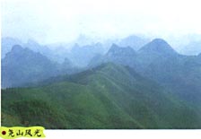尧山位于市东郊,因传说秦时曾在此处建尧帝庙而得名。它原是桂林古海中的岛屿,也是桂林唯一的土山。这里岗峦起伏,气势磅礴,海拔909米,是桂林的最高点。山上苍松翠柏,绿色连天。春天,杜鹃盛开,争艳斗丽,花红遍野。冬天,山有积雪,银海一片,颇具北国风光,因此,“尧山冬雪”便成为桂林的胜景。明代诗人严震直赞道:“朔风从东来,吹堕遥空雪;洒向尧山顶,相看最奇绝。”尧山不仅风景优美,而且古迹丰富,最著名的是明代靖江王陵和抗清英雄张同敞的墓。
