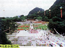 七星公园在漓江东岸,是桂林市面积最大、风景最美的综合性公园。在解放桥往东望去,可以看见七座山峰,排列得很像北斗七星,而被称为七星山。斗魁的北四峰叫普陀山,斗柄的南三峰,组成了月牙山。七星公园因而得名,它荟集了山、水、洞、石、庭园、林木、文物等精华,主要景观有花桥、驼峰、普陀山、七星岩、月牙山以及桂海碑林等,是人们的必游之地。