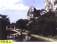 南溪山在市区南面的将军桥头,离火车站约1公里,因南溪萦绕而得名。它有东西两峰,彼此并列,耸拔千尺,北面的峭壁,山石洁白。雨后新晴,云雾初散,阳光照映在山石上,会反射出耀眼的光彩。在古代“南溪新霁”就是桂林八景之一。南溪山洞多而奇,以北面的白龙洞最为著名。它洞口高敞开阔,好像一间高大的石屋,石壁白色,有一石乳下垂,极似龙头,所以叫作白龙洞。洞内有双狮石、玉笋迎春、白龙吐珠等奇景。出白龙洞右行,便到玄岩,这是一个由钟乳石组成的丰富多彩的画廊。此洞分成两道。右道可到穿云岩,该洞岩道较短,常有云雾穿门,岩口有不少珍贵的石刻。左道可通观音岩,它因洞口有一组钟乳石酷似观音菩萨而得名。从观音岩沿左侧一条小路,可达龙脊洞。龙脊洞洞壁奇险,气势雄伟。现在这三洞已经串通,从白龙洞入口,游到玄岩,再接着游龙脊洞,然后再出来。南溪山的外形像个巨大的马鞍,马鞍的凹处就是龙脊坳,这里嶙嶙巨石,若断若续,东高西低,极像龙脊。龙脊坳的南侧山腰有训仙岩,洞内遍布宋明以来的石刻。出刘仙岩,便可到达一个上小下大的田螺,故名螺窟。南溪山已被建成公园,园内竹林青葱,松柏苍翠。南溪桥南有一泉,名叫白龙泉,泉水清冽,古时曾进贡皇帝,所以又称贡泉,现设饮泉茶室,供游人酌茗憩息。