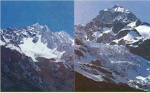玉龙雪山主峰扇子陡海拨5596米,直插蓝天,南北向排列的玉龙十三峰犹如一条腾空的巨龙,它不仅气势磅礴,而且秀丽挺拔,造型玲珑,还随着时令和阴晴的交替,景观也变幻无常,时而云蒸雾涌,玉龙乍隐乍现,时而碧天如水、万里无云,群峰象玉液刷洗,晶莹的银光,耀目晃眼;有时一条云带束腰,上面雪峰皎皎,下面岗峦碧翠。东方欲晓,峰顶早染晨曦,多彩的朝霞映上雪峰,白雪呈绯红状与霞光掩映闪烁;傍晚余辉把雪峰染抹得象披上红纱,云朵带着晚霞奇彩,飞归峰间谷壑,一弹之顷,变态无穷。