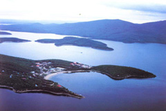 镜泊湖位于黑龙江省东南部,距牡丹江市110公里。它是大约一万年之前火山喷发壅塞牡丹江而成湖,南北长近50公里,最宽处9公里,湖区面积90.3平方公里,水面面积为89.7平方公里,平均水深40米,最大水深62米。湖中大小岛屿星罗棋布,有山从水中起之势。湖水出口处有一石崖,面临深潭,形成飞瀑。湖形曲折,群山环抱。湖中有"内八景",分别为吊水楼瀑布、白石砬子、大孤山、小孤山、城墙砬子、珍珠门、道土山、老鸹砬子等。