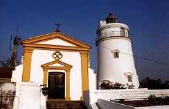 屹立在教堂侧的东望洋灯塔,建於1864 年,於1865年正式落成,灯塔高十三公尺,是远东历史最悠久的一座灯塔。