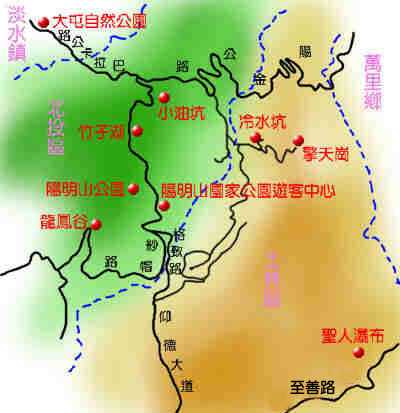 阳明山国家公园是台湾四个国家公园之一,也是台湾最具自然风味的国家公园,於1985年成立,占地11456公顷,东边自矿嘴山、五指山东侧起,西边至烘炉山、面天山西侧,北边到竹子山及竹子山西北的土地公岭,南边则到纱帽山南侧,公园高度在海拔在200公尺至1120公尺之间。