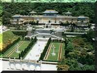 故宫博物院位於台北近郊阳明山脚的士林区,是一座中国宫殿式的建筑,白墙绿瓦,非常雄伟。内部完全现代化,正院平面图呈梅花形,分布五个大厅。