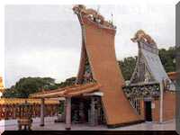 这座寺庙原先主要是歌颂爱情的伟大,庙中塑有牛郎织女的蜡像,鸟卵排行的鹊桥,栩栩如生。还有司马相如琴挑、文君当炉的故事,雕塑得惟妙惟肖,令人心生共鸣,惟目前已改为佛教寺庙,供奉释迦牟尼佛。