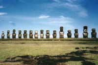 复活节岛北部的阿纳凯是全岛最富魅力的景点,除一排威武的“莫埃”石像外,一片金黄色的沙滩又长又宽;岸上的棕榈树林青翠茂密。攀上全岛最高点,海拔507米的特雷瓦卡山顶,极目远眺,岛上的大小火山和四周的石像尽收眼底,浩瀚的太平洋与蓝天浑然一体,令人心旷神怡。从山上下来不远便是著名的“七尊莫埃”景点。据传,它是一个毛利巫师的七个儿子等待欧图·玛图阿王到来的地方。“达海”是全岛保存最完好的“莫埃”石像群。每当傍晚,人们步行到这里观看日落,霞光映红半边天,巨大的石像被衬托出永恒的剪影。