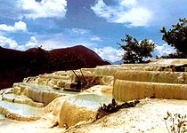 白水台位于中间县东南三坝白地行政村境内 ,距县城101公里,海拔2380米。其成因是由于水中的碳酸钙经阳光照射发生分解反应,形成碳酸钙白色沉淀物,不断覆盖地面而形成的千姿百态的熔岩地貌。