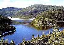 在风清日丽的时候,荡舟于湖中。静观水底能看到十多米以下的水底,成群结队的“重唇鱼”在水中嬉戏畅游。甚至,连鱼身上的花纹都能看得清清楚楚。湖畔四周,林深树密,傍晚或清晨,微波不兴,湖面如镜,此时,高山临湖,湖映山影,山光水色,溶为一体。于是便有:“半湖青山半湖水”的绝句来赞美这独具神韵的自然美。