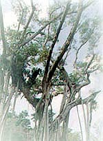 在西双版纳的热带雨林、热带季雨林里,独树成林的景观比比皆是。那些大榕树除主干外,还从枝干上生出许多柱根插入土中,支柱根又变成了另一棵树,形成树生树,根连根的壮观景象。在打洛镇政府以南3.5公里,靠边境的地方,生长着一棵独树成林的大榕树,有31个根立于地面,树幅面积120平方米,枝叶茂盛,既像一道篱笆,又像一道绿色的屏障。