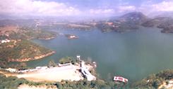 当你漫步穿过坝脚双龙抱住门前,栖身于鸟语花香的坝前“公园”时,不曾想到这里原是一片乱石滩吧!如今人们修成人工湖、水中亭,沿台阶拾级而上,置身于坝顶,库内浩瀚碧水,波光粼粼,水中小山松涛阵阵,似点点绿洲遍撤“大海”之中。