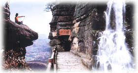 武定狮子山素有“西南第一山”之称,山势雄险,在蜿蜒起伏的丘陵中拔地而起,像一头雄踞而视的狮子。山中箐谷幽深,林木葱郁,一些珍禽异兽相嬉于其间。在壁立的悬岩中,一条历史悠久的石