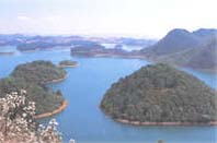 普者黑(彝语意为鱼虾多的池塘)位于丘北县城以北15公里的普者黑盆地。盆地处于南盘江支流清水江和补觉河的分水岭地带,面积165平方公里,孤峰高度50-l50米,多为宝塔状、馒头状。景区内大小湖泊68个,河流15条,孤峰300余座,大溶洞73个,地下暗河长120公里。座座孤峰,耸立于湖泊或平坝之上,峰如塔,陡如削,湖水迂回孤峰之间,山水相连。从仙人洞村乘船至落水洞,行程12公里,远视群峰林立,近看青峰浮波,仙人湖、灯笼湖上 13个小岛漂浮于水面,仲夏,5000余亩白荷花洒满水面,无边无际,呈现出大自然的秀美。