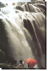位于富宁县木央乡普阳村,距县城44公里,在南利河上游。瀑布落差96米,宽20余米,瀑布上依悬崖,下临绝涧,直泻而下,如洪波决堤,似匹练悬空,水石相搏,雪花四溅,声闻数里。阳光照射,宛如七色彩虹,其声其景,蔚为壮观。