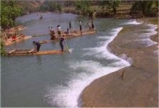 多依河位于罗平县城东南40公里,经十万大山峰丛至多依寨子进入景区。景区从多依寨至 “鸡呜三省”的三江口,全长12公里的河床上有近40 个瀑布,两岸古木修竹,色彩丰富,层次清晰。河水 常年晶莹剔透,蔚蓝无边。尤其是沿河两岸盘根错节 的干年古树,仿佛就是一座庞大的自然根雕艺术展览 馆。河道婉蜒曲折,布依村寨沿河而布,吊脚楼隐现 树丛竹林之间,一派十足的热带风光画面。一水合三江、清江一边淌、浑水一边流的奇观异景就在此显现。