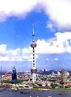 矗立于浦东新区陆家嘴的浦东公园内,高468米,为亚洲最高,世界第三。仅次于加拿大多伦多电视塔和俄罗斯的莫斯科电视塔。它左右两侧的杨浦大桥和南浦大桥交汇在一起,形成双龙戏珠之势。