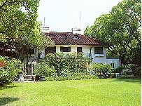 主楼始建于1920年,是一幢白墙红瓦的西式三层别墅,楼前是草坪,屋后是花园,四周樟树环绕,终年葱茏苍翠。楼下客厅挂着孙中山遗像和毛泽东看望宋庆龄时的合影,宋在此曾接待过党和国家领导人、外国元首及政治家。楼上是宋庆龄的卧室和办公室,现陈设着她生前用过的物品。