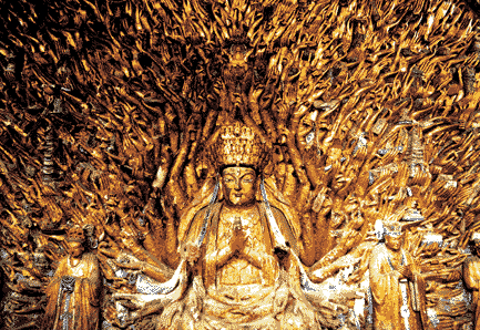 距大足县城东北15千米。南宋淳熙六年(1179年),名僧赵智凤于此建石窟寺,历时70余年建成。宝顶山是佛教圣地之一,有“上朝峨嵋,下朝宝顶”之说。