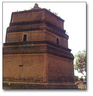 繁塔原高九层,现在遗存只有原塔下面的三层,塔的上半截拆除铲掉。直到清初重修国相寺时,才在三层繁塔上部修成一个平台,又在平台上修建了一个七级实心小塔,使繁塔成三层大塔上面摞小塔的奇特造型,一直延存至今。