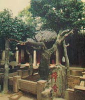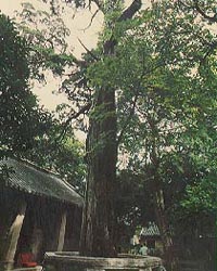 白云洞额刻有“白云洞”三字,是清末翰林院日照尹琅若(字琳基)所题,字体雄浑,很有气势。洞前有两株白果树,大可合抱,如巨伞撑天,相传两树一雄一雌,千年相伴,至今生意盎然。还有一株玉兰,枝繁叶茂,也有数百年树龄。洞后有很多松树,其中一株古松,形状奇特,名曰“华盖松”。这株华盖松,老干蟠曲,遮满洞顶,小枝斜出,伸向洞外,从下仰望恰似一条张牙舞爪的飞龙,在洞顶上腾空而起,极是奇观。