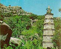 塔院中有慈沾藏骨的九级青砖慈沾塔,塔旁有一松伴立,似甚依依,曰“松抱塔”,为寺内胜迹。