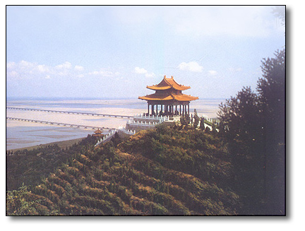 登上邙山最高处,站在红柱黄瓦的凉亭上,放眼远眺,可以饱览那水天一色,“黄河之水天上来,奔流到海不复还”的壮阔情景。